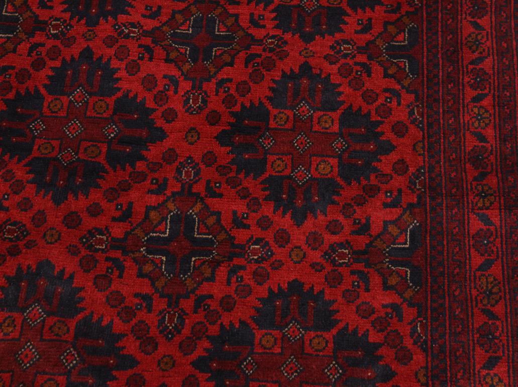 Stunning handmade rug crafted from high quality wool and hand knotted by the Esari Turkmen of Northern Afghanistan. Featuring a geometric pattern, this Biljilk Khal Mohammadi design with dark hues gives this masterpiece a dreamy serenity which adds an undeniable element of luxury to any room in your home.