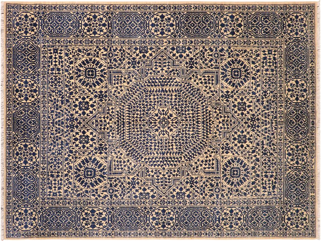 Southwestern Mamluk Celestin Beige/Blue Wool Rug - 8'0'' x 9'10''