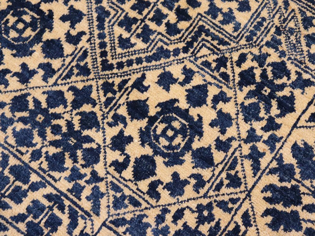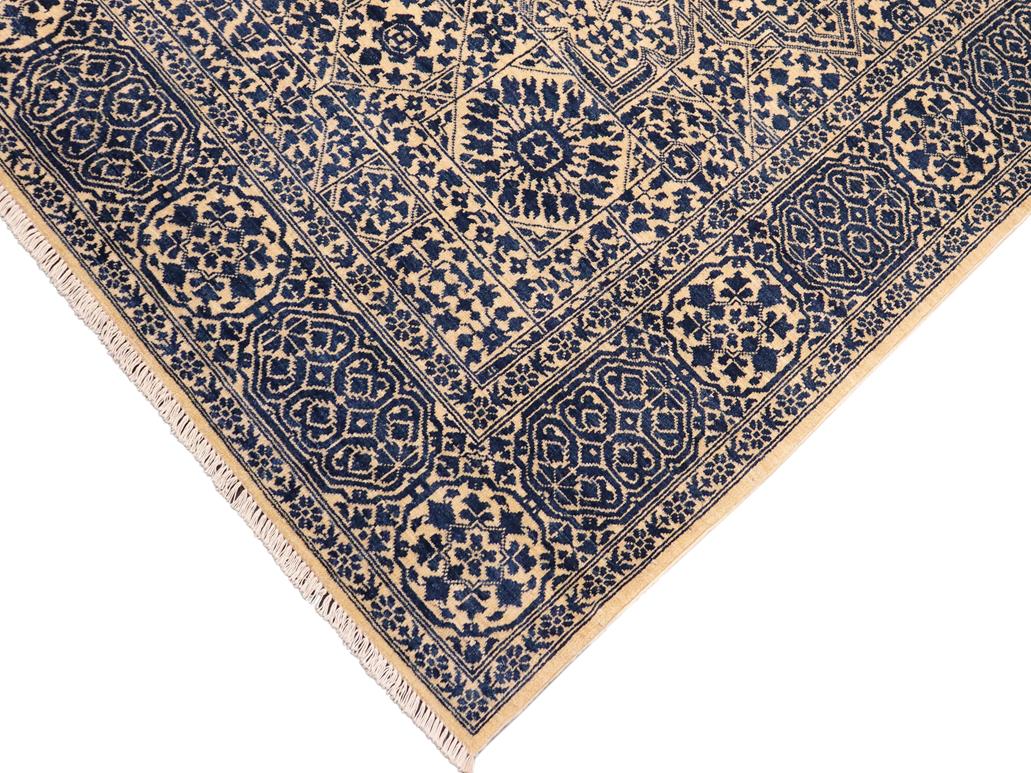 With strict standards of craftsmanship and quality of materials used this magnificent hand-knotted rug features a Mamluk design characterized by their unique weave and fine quality wool. Made for the Sultans in the 15th Century, Mamluk hand-knotted rugs devour design and structural characteristics that are based on a unique interplay of geometric forms with beauteous medallions made up of intersecting compartments and subtle layering making it a masterpiece of its own. This magnificent rug made with handspun wool and natural dyes features soft and lustrous, almost silk-like wool which gives it an elegant royal look. The breath-taking color pallet with an intricate geometric Mamluk design brings a rich form of cultural art to any decor. The unique hand-knotted rug narrates an archival story of the Mamluk Sultans and the Ottoman Empire bringing a rich sense of history, elegance, and sophistication in any decor.