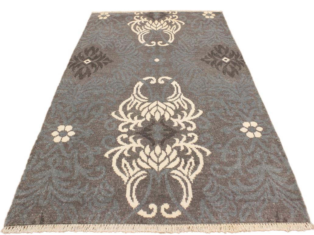 Modern Elisora Gray/Ivory Wool & Viscouse Rug - 4'2'' x 6'0''