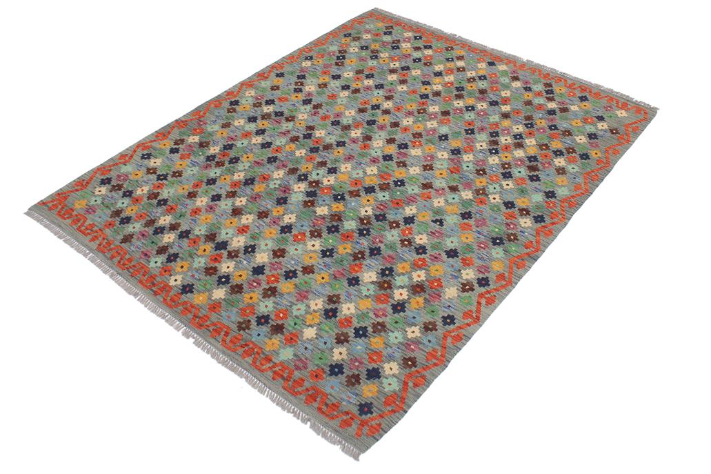 Modern Turkish Kilim Jannet Hand-Woven Wool Rug - 5'0'' x 6'5''