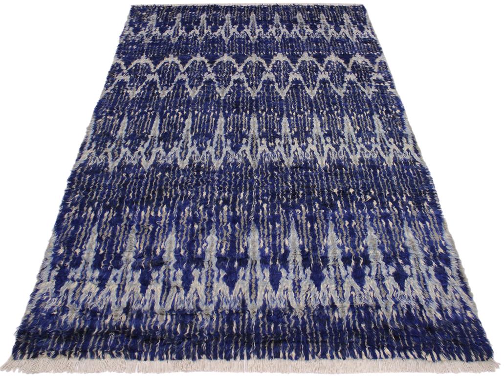 Hand knotted from finest quality wool, this stunning fashionable handmade Moroccan rug also known as a shag rug is crafted by skilled artisans with trendy and elegant design and sophisticated modern pattern creating a compelling focal point in any living area. The Moroccan rug featuring a stunning global inspired design that endure at the forefront of contemporary trend. The meticulously plush pile constructed in great quality wool, features luxurious texture and appearance adding softness, warmth and comfort to any room.