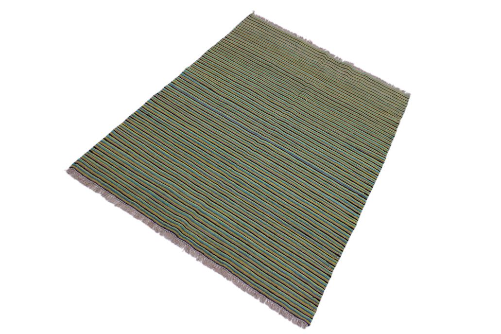 Elevate the elegance of your home with this stunning hand-woven tribal Kilim wool rug. Meticulously crafted on a loom by the Nomad Turkman people using hand-spun wool and 100% natural vegetable dyes, these rugs are recognized for their repetitive geometric patterns, incorporating naturalistic floral and traditional designs. The contemporary fashion palette results in bold, sharp patterns that are incredibly versatile, as the pattern is the same on both sides. These reversible rugs feature a lighter shade on one side and brighter colors on the other, providing versatility according to preference. These unique rugs are made by knotting short strands of different colors onto the warps and securing them by tightly pressing the wefts. The designs are created by interweaving the various colored wefts and warps. Kilims are known for their exceptional durability and versatility, making them truly unique rugs.