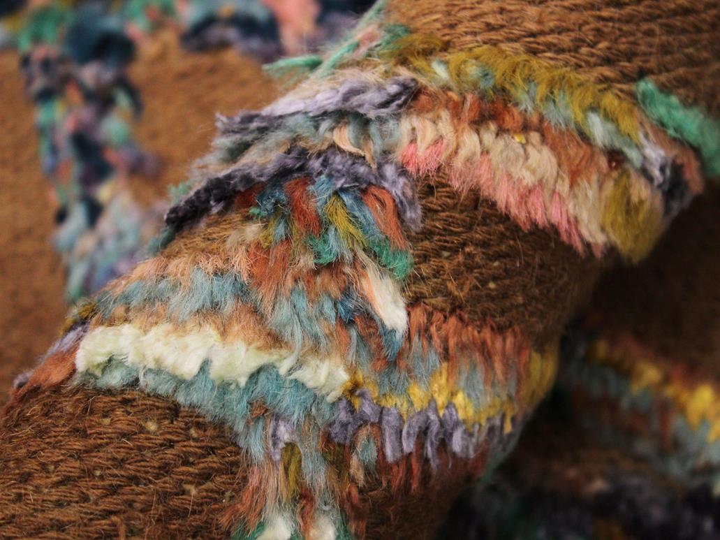 Abstract Moroccan High-Low Skidmore Brown/Ivory Wool Rug - 7'10'' x 10'2''