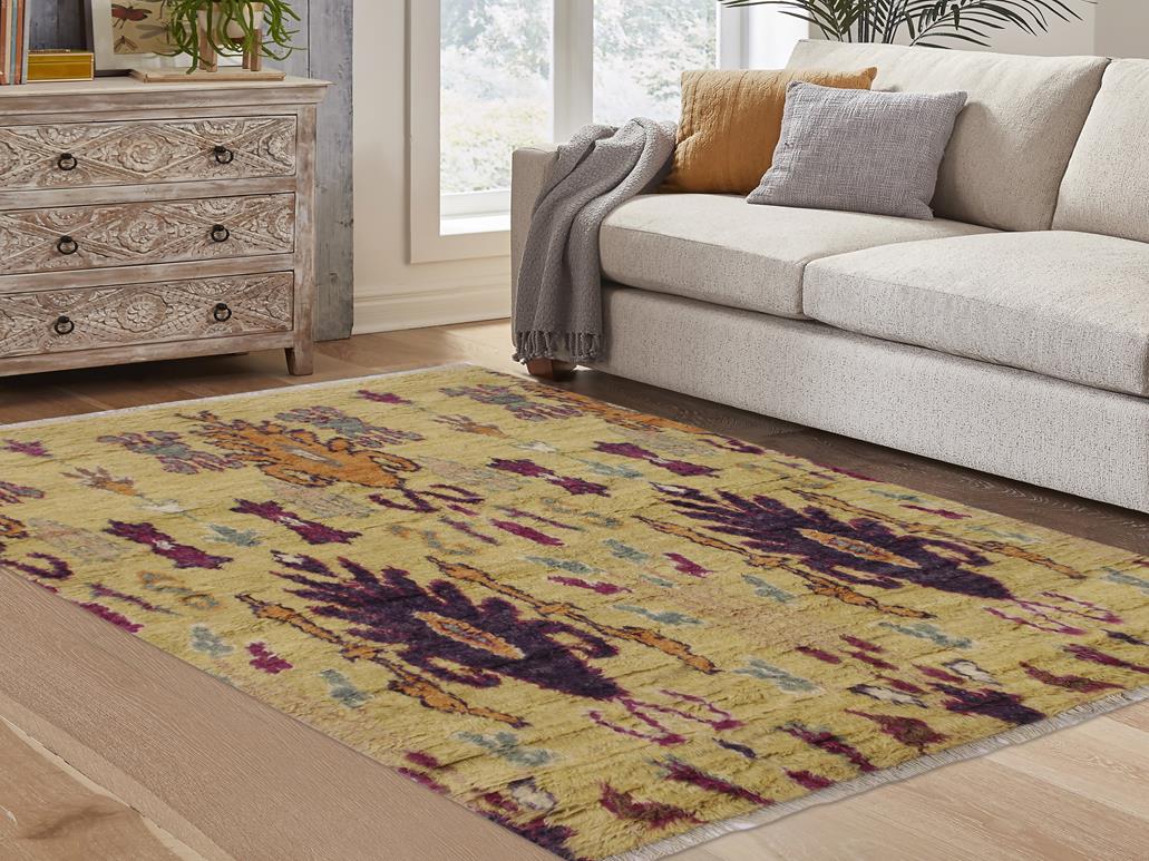 Eclectic Moroccan Stjohn Lt. Gold/Purple Wool Rug - 5'1'' x 7'6''