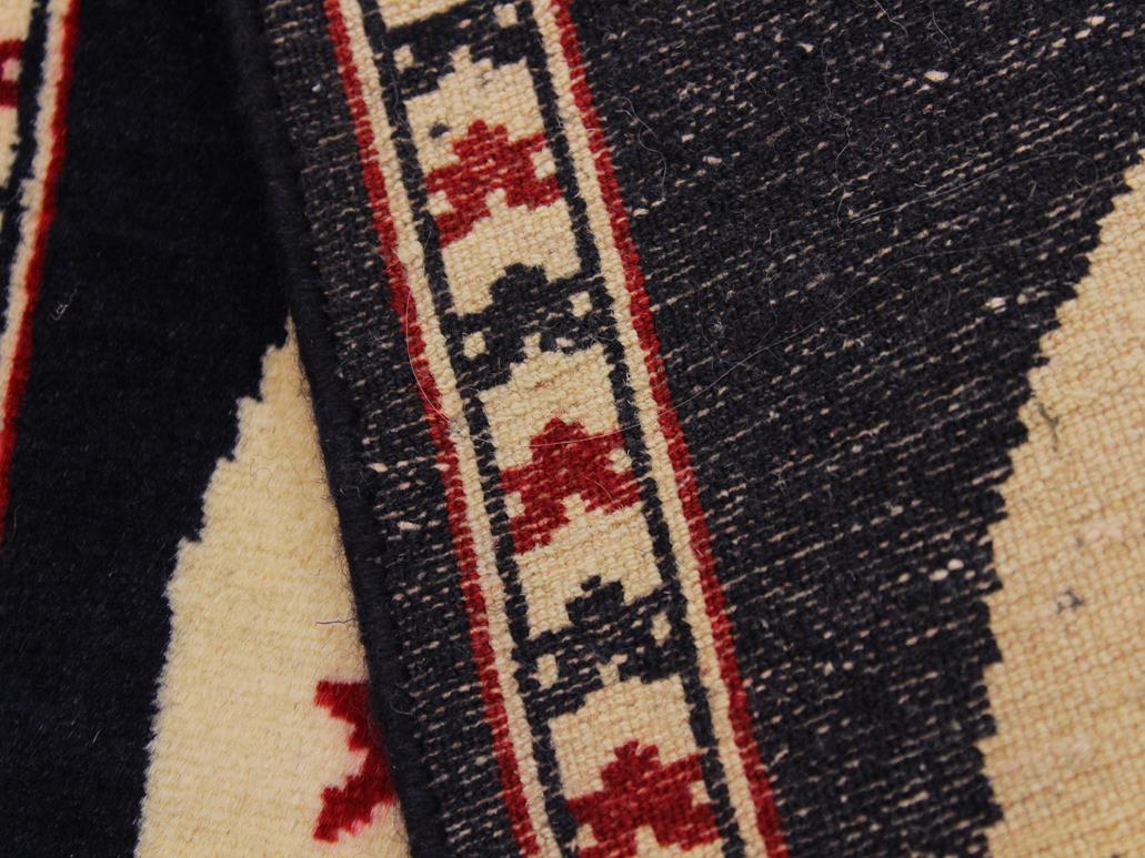 Decorate your home with this one-of-a-kind luxuriously hand-knotted Bokhara rug. Designed with mesmerizing intricacy and gorgeous color palette, this masterpiece is defined by symmetrical patterns of repeated oval and diamond-shaped motifs. Handmade in a versatile intricate pattern in a unique color combination, this rug is most popular for its soft, luxurious feel, heavy pile, attractive colors, appearance, durability, and affordability. Made with finest handspun New Zealand wool in a unique octagonal motif also referred to as Elephant’s foot. The luxurious wool construction with a transitional geometric design meshes with classic to contemporary decors seamlessly.