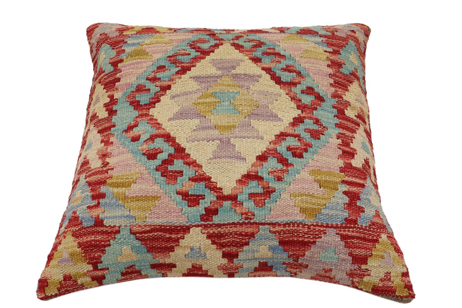 Embellish your home with this timeless casual chic handmade Southwestern Kilim throw pillow covers made with wool and cotton. Constructed on a loom by Nomad Turkman people with hand-spun wool and Natural Vegetable dyes these beautiful Kilim pillow covers are known for their beautiful repetitive geometrical, naturalistic floral, and traditional patterns yet still giving it a modern look. Masterfully artisan-crafted on traditional Kilim looms with a contemporary fashion palette producing bold intricate sharp patterns making them a standout piece in any decor.
