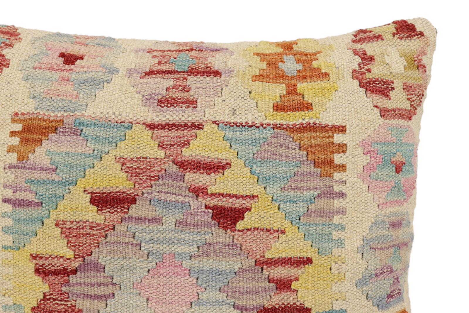 Embellish your home with this timeless casual chic handmade Southwestern Kilim throw pillow covers made with wool and cotton. Constructed on a loom by Nomad Turkman people with hand-spun wool and Natural Vegetable dyes these beautiful Kilim pillow covers are known for their beautiful repetitive geometrical, naturalistic floral, and traditional patterns yet still giving it a modern look. Masterfully artisan-crafted on traditional Kilim looms with a contemporary fashion palette producing bold intricate sharp patterns making them a standout piece in any decor.