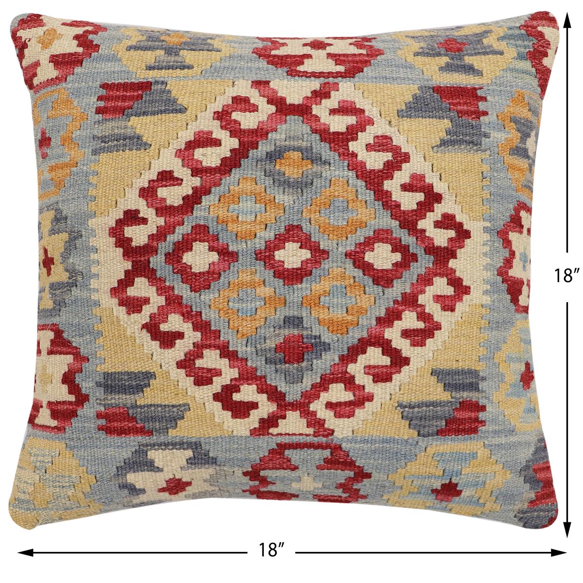 Bohemian Carder Turkish Hand-Woven Kilim Pillow