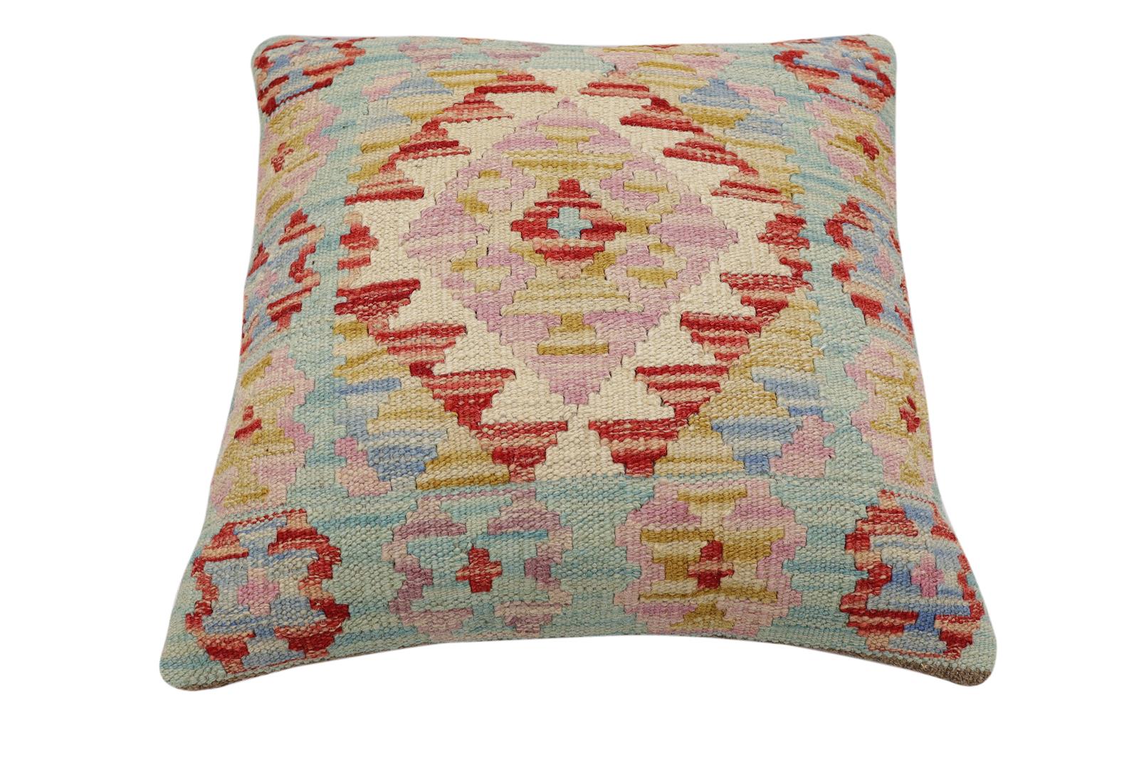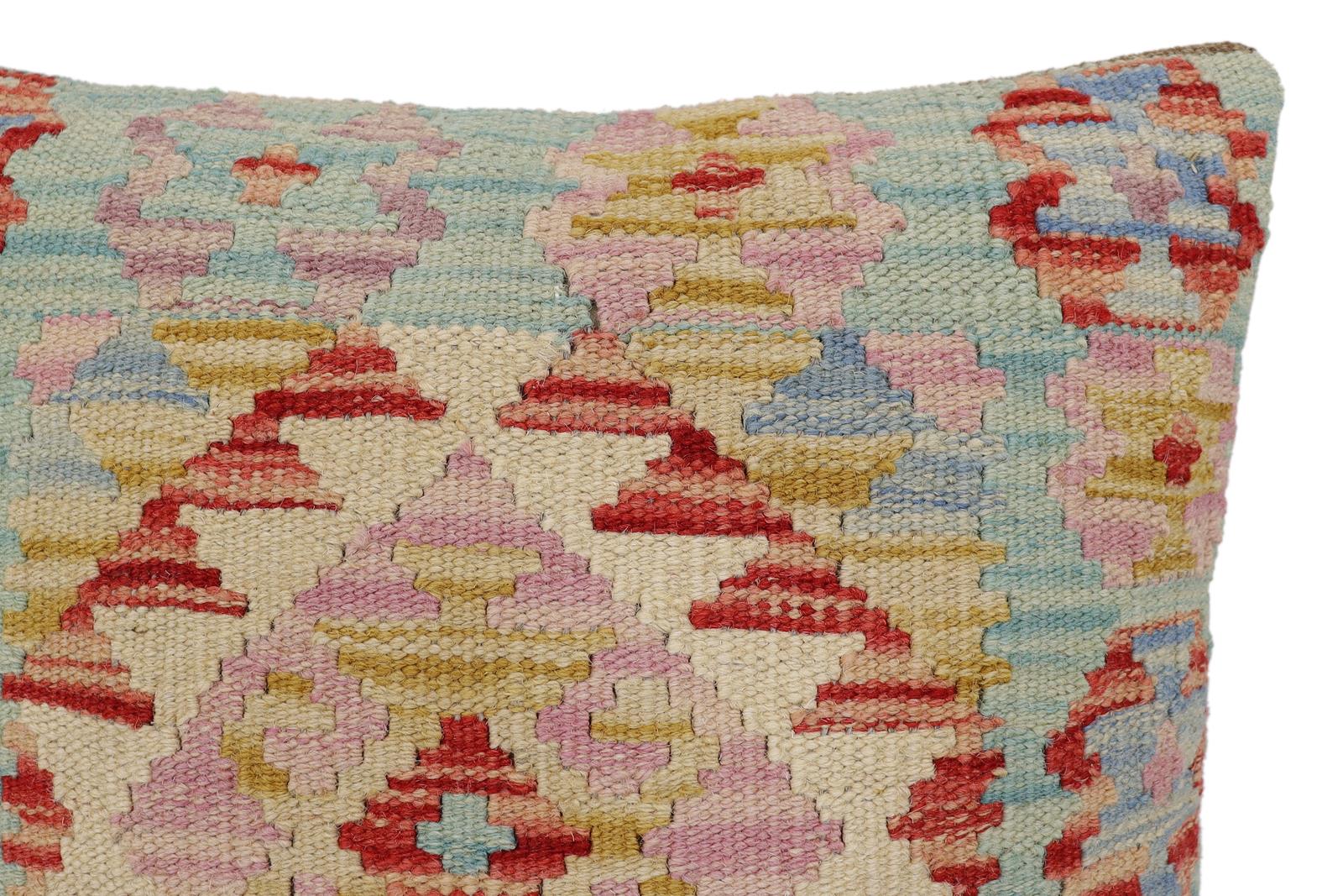 Embellish your home with this timeless casual chic handmade Southwestern Kilim throw pillow covers made with wool and cotton. Constructed on a loom by Nomad Turkman people with hand-spun wool and Natural Vegetable dyes these beautiful Kilim pillow covers are known for their beautiful repetitive geometrical, naturalistic floral, and traditional patterns yet still giving it a modern look. Masterfully artisan-crafted on traditional Kilim looms with a contemporary fashion palette producing bold intricate sharp patterns making them a standout piece in any decor.