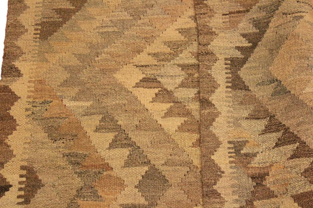 Elevate the elegance of your home with this stunning hand-woven tribal Kilim wool rug. Meticulously crafted on a loom by the Nomad Turkman people using hand-spun wool and 100% natural vegetable dyes, these rugs are recognized for their repetitive geometric patterns, incorporating naturalistic floral and traditional designs. The contemporary fashion palette results in bold, sharp patterns that are incredibly versatile, as the pattern is the same on both sides. These reversible rugs feature a lighter shade on one side and brighter colors on the other, providing versatility according to preference. These unique rugs are made by knotting short strands of different colors onto the warps and securing them by tightly pressing the wefts. The designs are created by interweaving the various colored wefts and warps. Kilims are known for their exceptional durability and versatility, making them truly unique rugs.