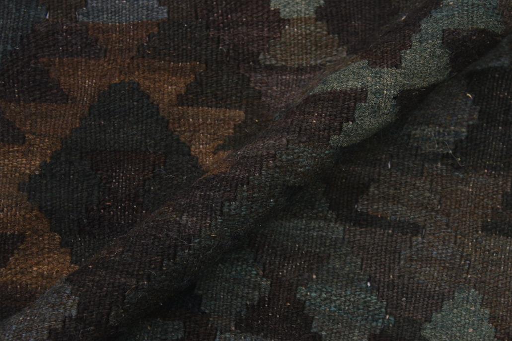Elevate the elegance of your home with this stunning hand-woven tribal Kilim wool rug. Meticulously crafted on a loom by the Nomad Turkman people using hand-spun wool and 100% natural vegetable dyes, these rugs are recognized for their repetitive geometric patterns, incorporating naturalistic floral and traditional designs. The contemporary fashion palette results in bold, sharp patterns that are incredibly versatile, as the pattern is the same on both sides. These reversible rugs feature a lighter shade on one side and brighter colors on the other, providing versatility according to preference. These unique rugs are made by knotting short strands of different colors onto the warps and securing them by tightly pressing the wefts. The designs are created by interweaving the various colored wefts and warps. Kilims are known for their exceptional durability and versatility, making them truly unique rugs.