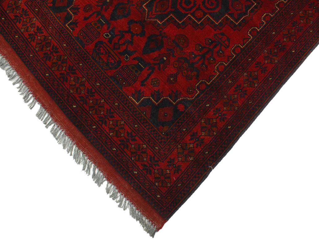 Stunning handmade rug crafted from high quality wool and hand knotted by the Esari Turkmen of Northern Afghanistan. Featuring a geometric pattern, this Biljilk Khal Mohammadi design with dark hues gives this masterpiece a dreamy serenity which adds an undeniable element of luxury to any room in your home.