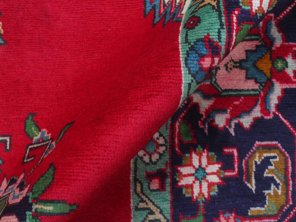 Create a new dimension of style in your space with this breath-taking antique hand knotted Persian rug. Made in Iran, this gorgeous hand-knotted rug features all vegetable dyes and 100% wool, adding luxurious texture and appearance. This gorgeous antique rug features an intricate design with a unique detailed border. Featuring an awe-inspiring color pallet and an intricate design handmade by skilled artisans is a great addition to any decor. Bring luxury and extravagance to your living space with this luxurious rug.