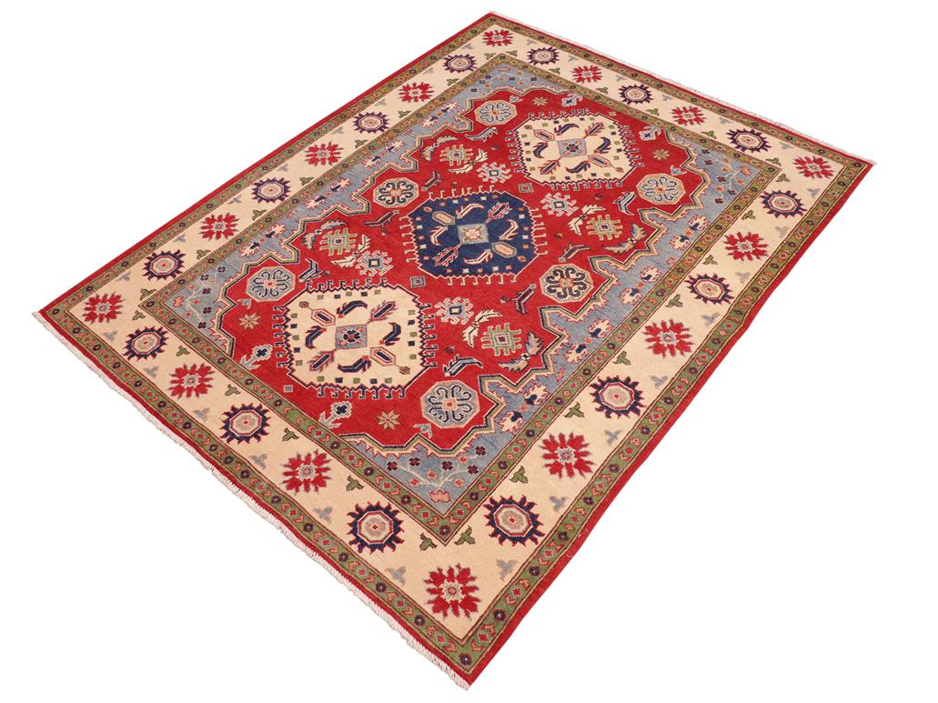 Southwestern Kazak Misti Red/Ivory Wool Rug - 5'0'' x 7'5''